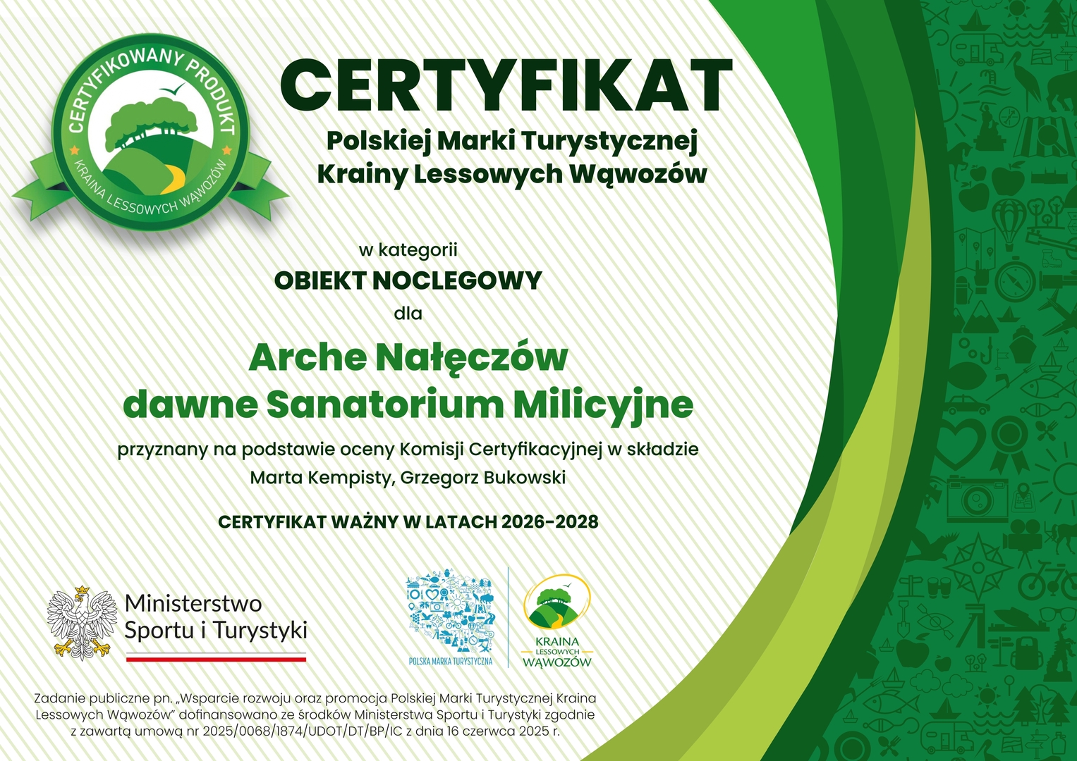 Uzyskanie certyfikatu to dla Arche Nałęczów nie tylko powód do dumy, ale także zobowiązanie do dalszego podnoszenia standardów. To potwierdzenie, że kierunek, w którym rozwija się obiekt – oparty na jakości, autentyczności i doświadczeniu Gościa – jest właściwy.